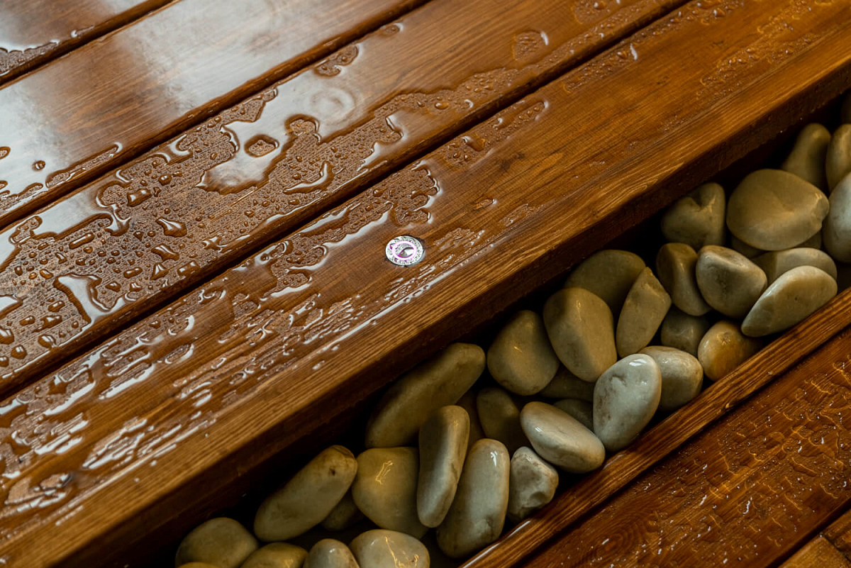 Помимо верхней душевой панели RGW в ванной комнате мы установили 2 стерео-колонки и сценарное освещение RAINZ SCENE, которое позволяет реализовать такие эффекты, как гроза с молнией, светомузыка, северное сияние и множество других эффектов, которые помогут полностью погрузиться в атмосферу. Подсветка в программах адаптирована под конкретное помещение, его конфигурацию и расположение самой ленты. Благодаря системным настройкам отдельные отрезки ленты включаются в определенные моменты с нужным освещением или эффектом. Благодаря этому душ превращается в настоящий аттракцион для всей семьи.