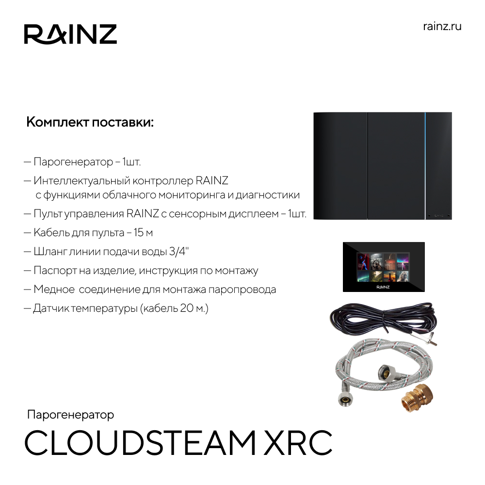 - Экосистема RAINZ: Полная интеграция для максимальной эффективности. Интегрируйте CloudSteam XRC с другими решениями RAINZ для создания единой и гармоничной системы управления вашим хаммамом.