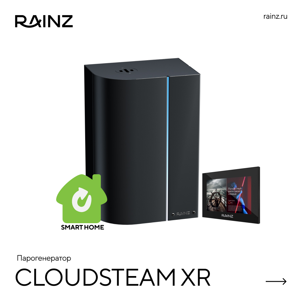 Встречайте многофункциональный парогенератор, который меняет представление о хаммаме. Это не просто устройство, а интеллектуальный центр вашей персональной вселенной комфорта, созданный для удовольствия и абсолютного благополучия. Забудьте о сложностях, компромиссах и ручных настройках. RAINZ CloudSteam создан для того, чтобы вы просто наслаждались каждой минутой.